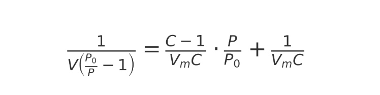 Durch lineare Anpassung der BET-Gleichung können die Steigung (k) und der Achsenabschnitt (b) ermittelt und Folgendes berechnet werden: